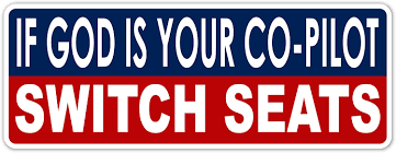 Some of the most offensive and inconsiderate drivers I experience on the roads today are driving automobiles with Christian-themed window decals and bumperstickers. If Jesus himself would think twice about getting in the car with you, might it be worth the thought to reconsider that perhaps he is not your copilot like your bumpersticker otherwise suggests?