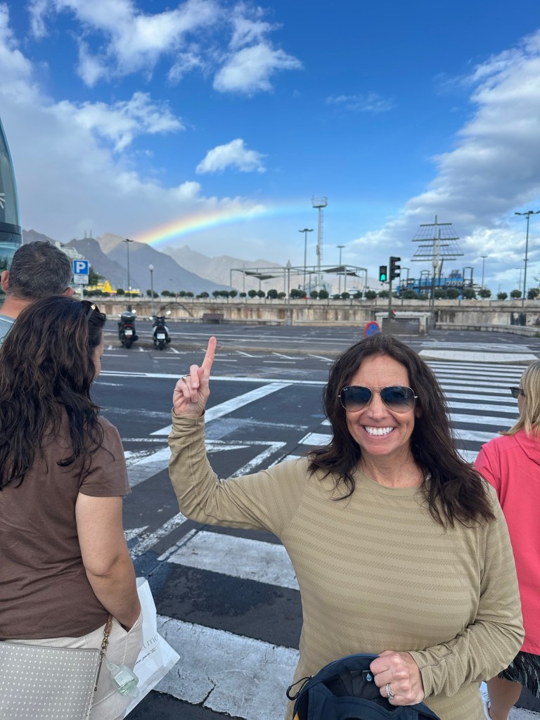 Today on our way back to the cruise ship, God decided to put on a show. Out of nowhere, the sky cracked open just enough to let the sun spill through the rain—and there it was, a perfect rainbow stretching across the clouds. My wife spotted it first. She pointed up at it, grinning… the kind of joy that makes you stop and breathe for a second. And I definitely needed a breather! I’ve not walked this much in years! 🥴